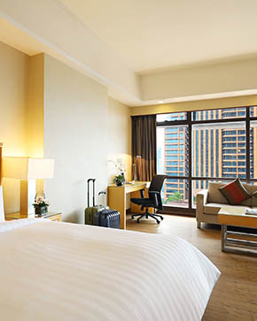 With plush furnishings and splendid city views, our suite promises a lavish stay in the heart of Kuala Lumpur. Enjoy Club benefits, including access to the Club Lounge.